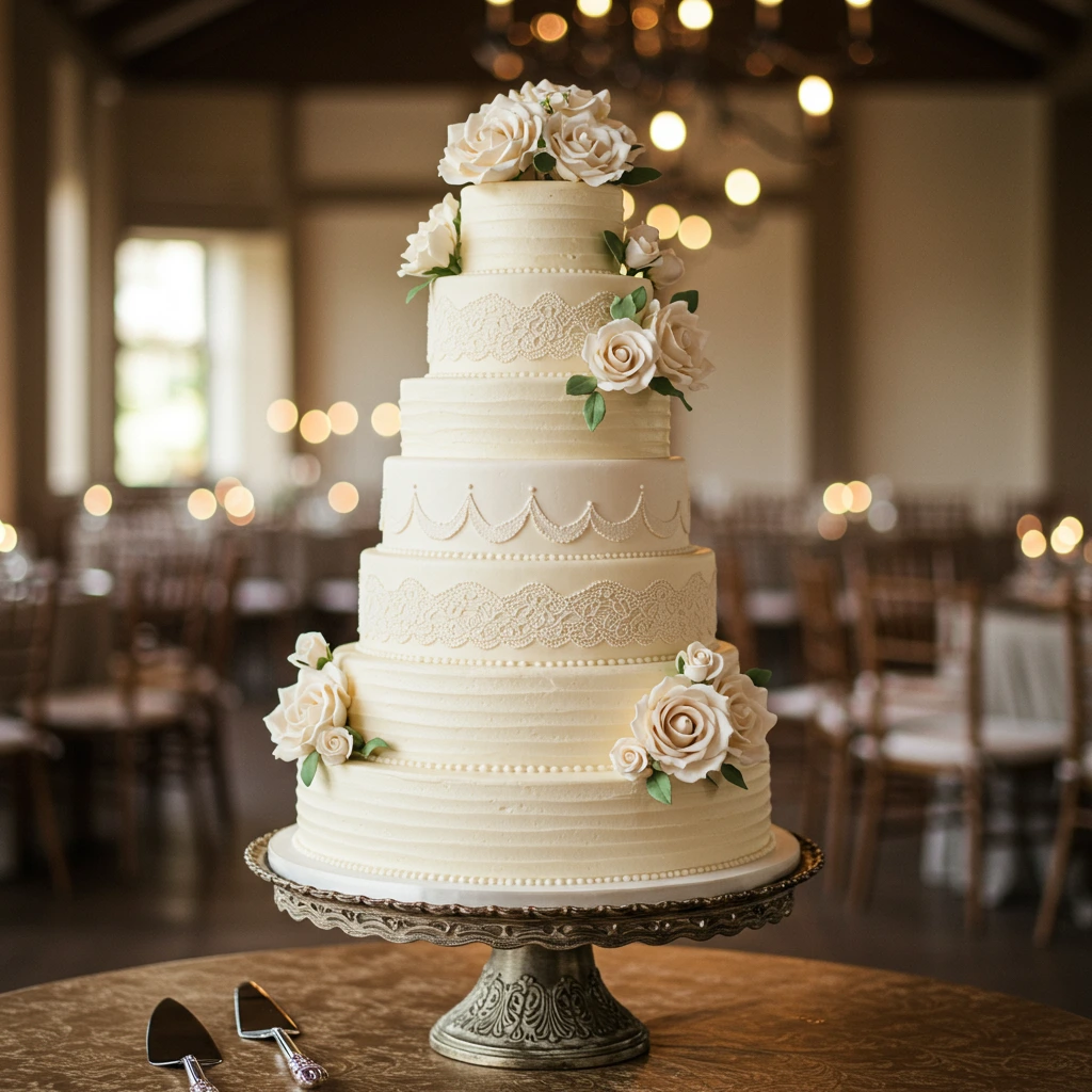 Includes full service with cake slicing, serving, and post-event cleanup, along with dessert plates and forks provided.